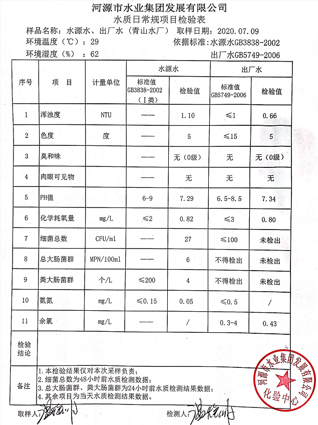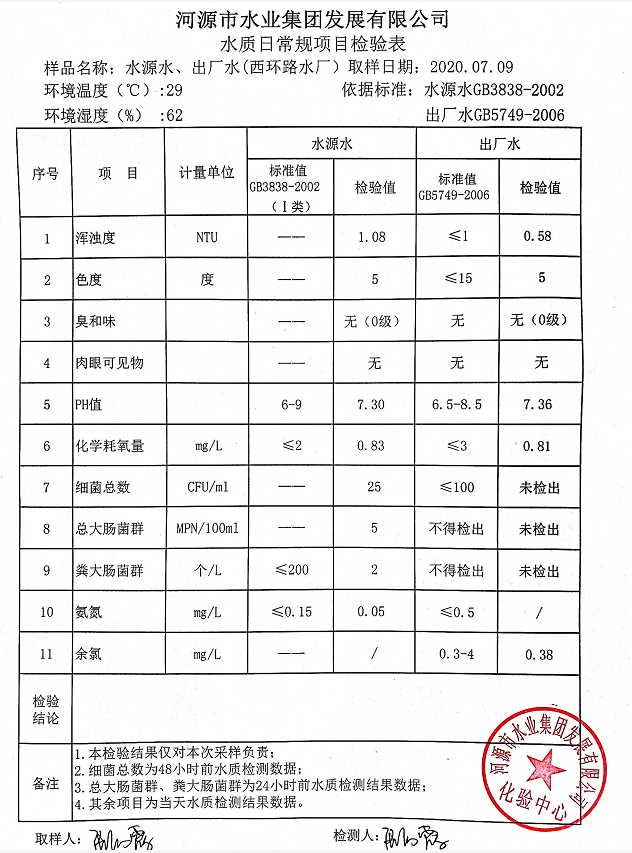 2020年7月9日水質(zhì)檢驗(yàn)報(bào)告