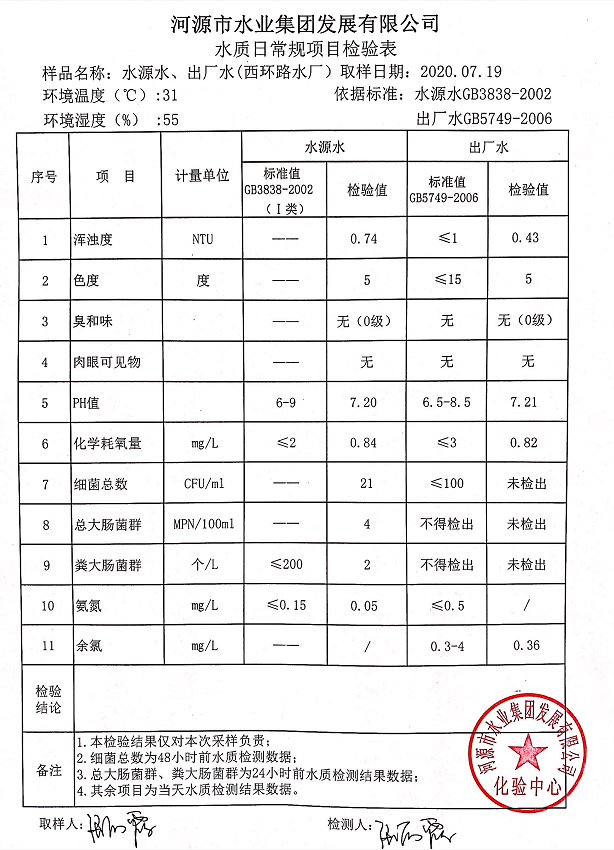 2020年7月19日水質(zhì)檢驗(yàn)報(bào)告