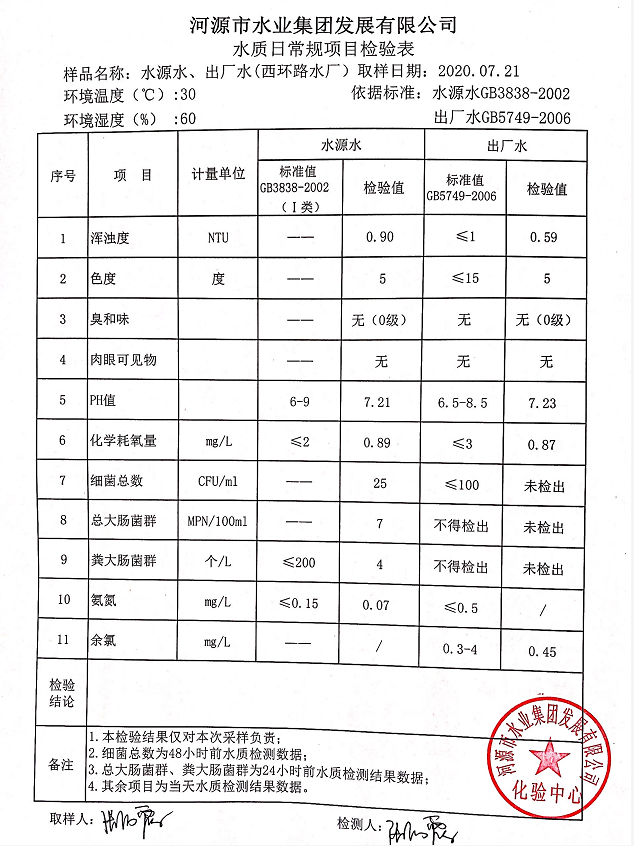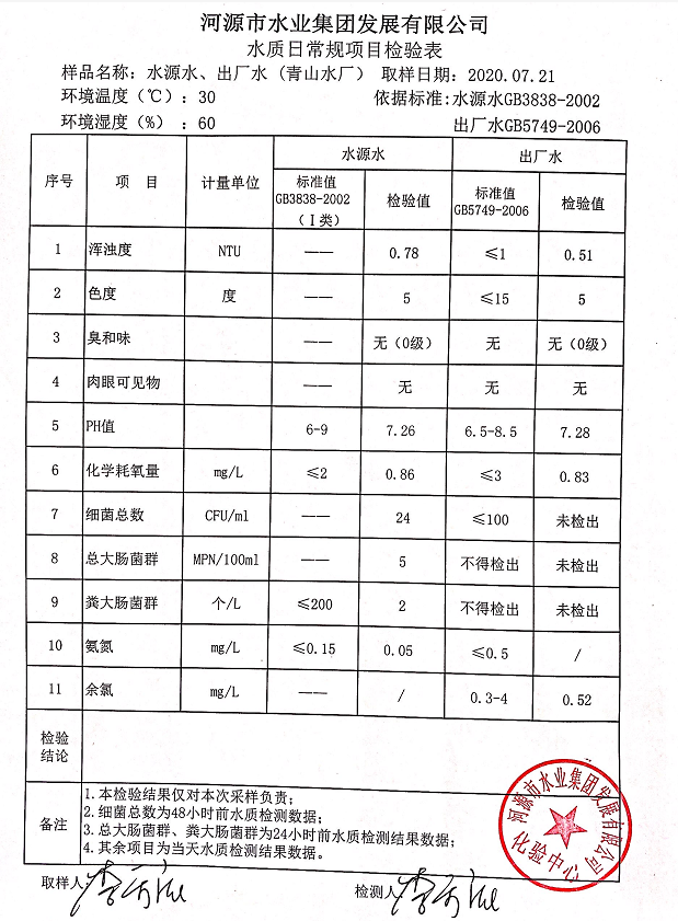 2020年7月21日水質(zhì)檢驗(yàn)報(bào)告