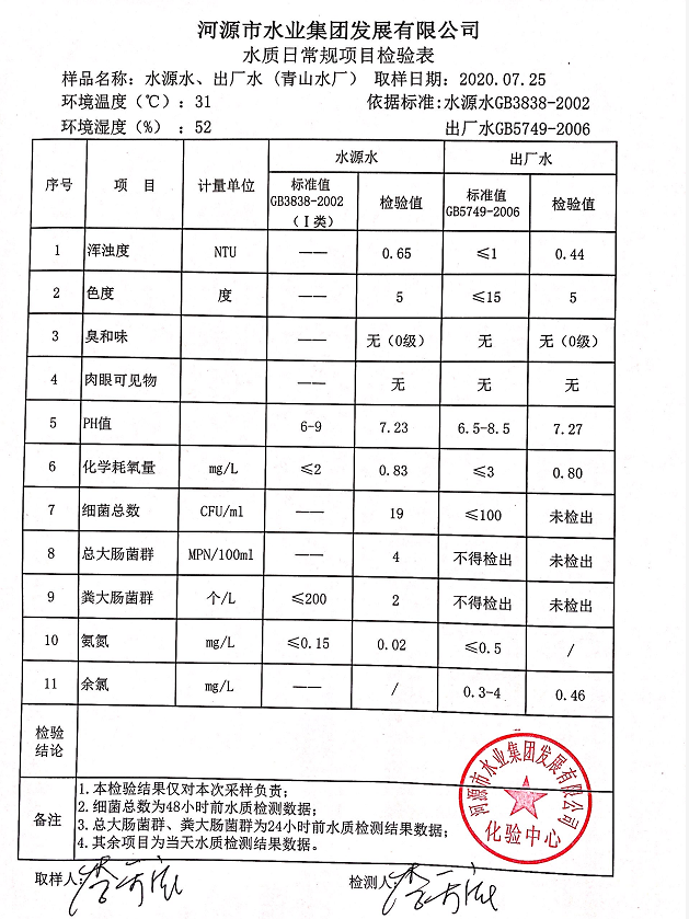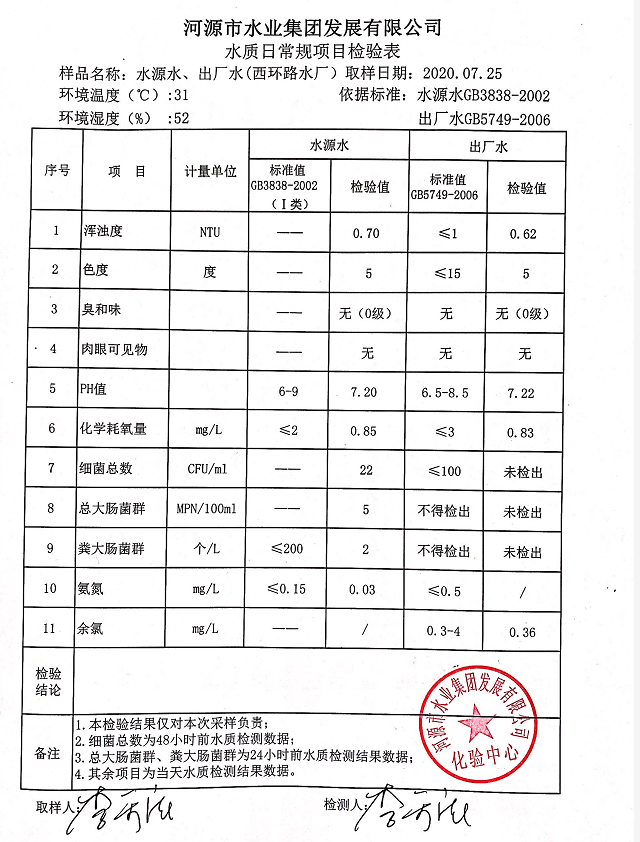 2020年7月25日水質(zhì)檢驗(yàn)報(bào)告