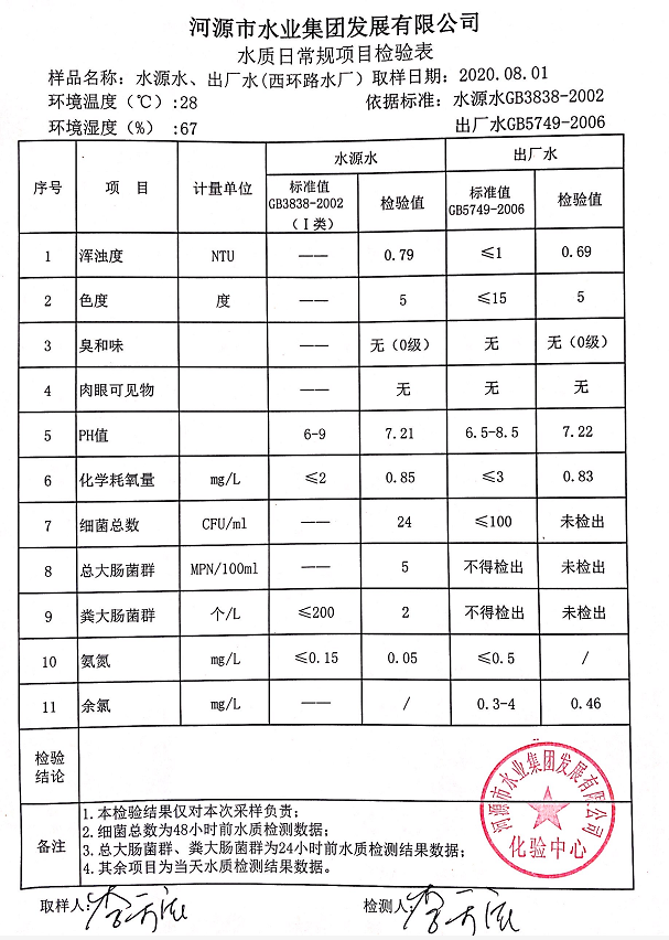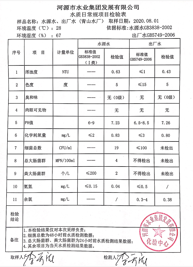 2020年8月1日水質(zhì)檢驗報告