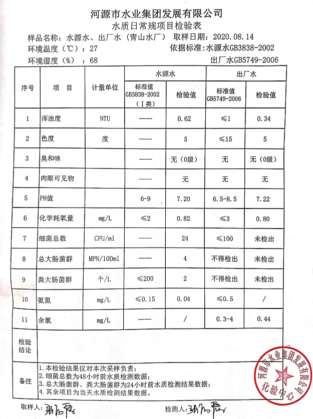 2020年8月14日水質(zhì)檢驗(yàn)報(bào)告
