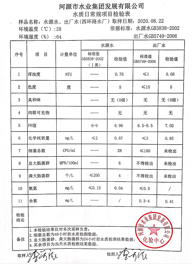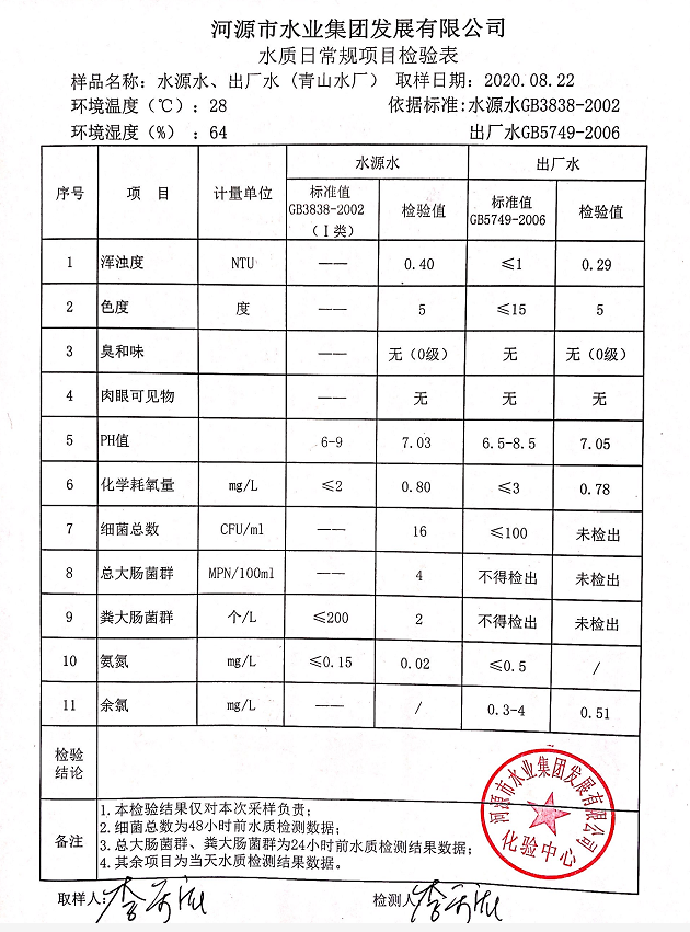 2020年8月22日水質(zhì)檢驗(yàn)報(bào)告