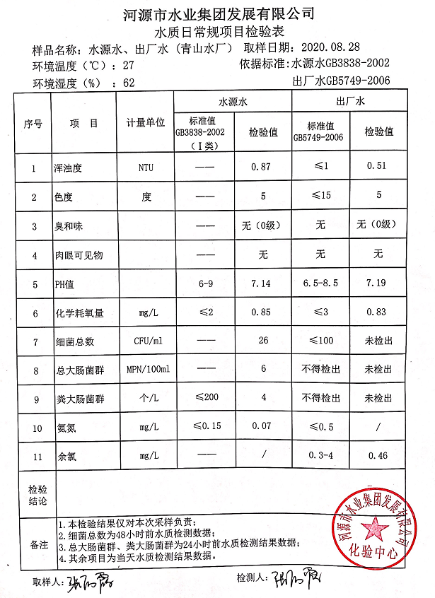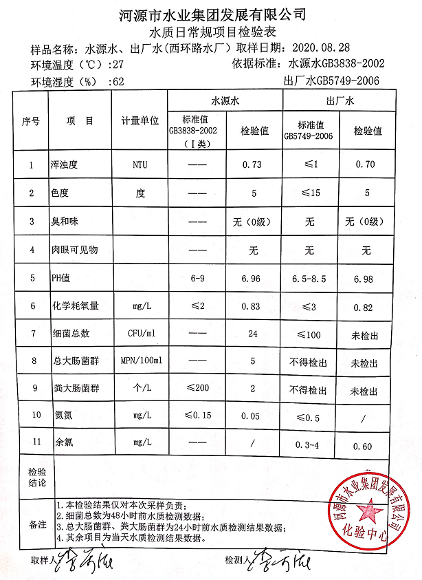2020年8月28日水質(zhì)檢驗(yàn)報(bào)告