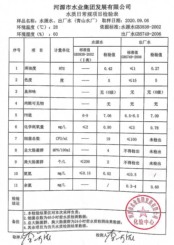 2020年9月6日水質(zhì)檢驗(yàn)報(bào)告