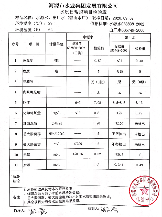 2020年9月7日水質(zhì)檢驗報告