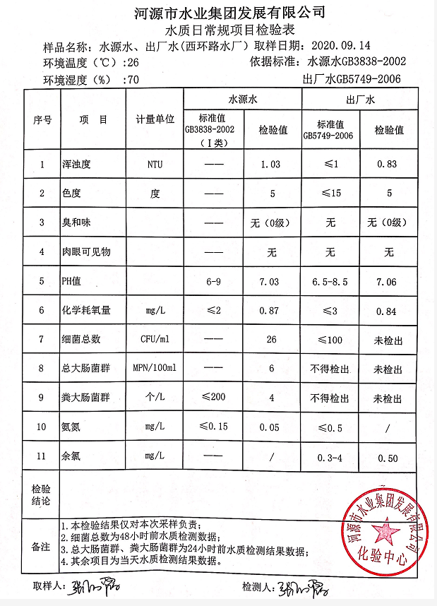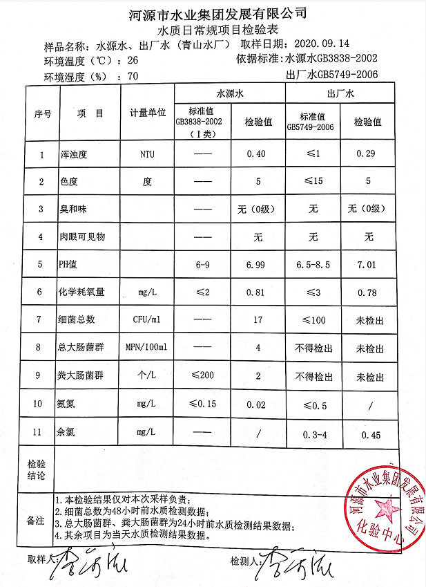 2020年9月14日水質(zhì)檢驗(yàn)報(bào)告