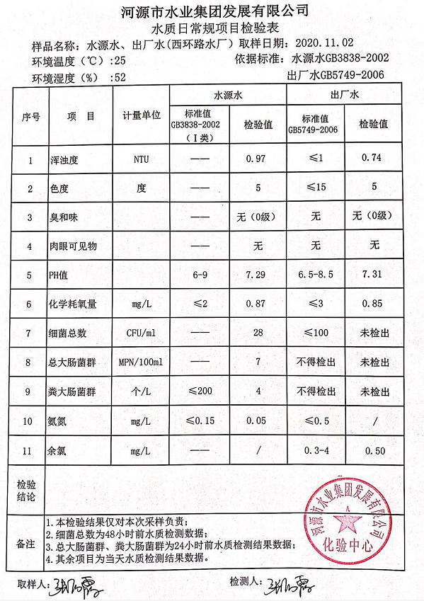 2020年11月2日水質(zhì)檢驗(yàn)報(bào)告