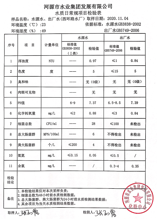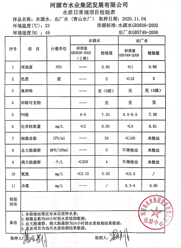 2020年11月4日水質(zhì)檢驗(yàn)報(bào)告