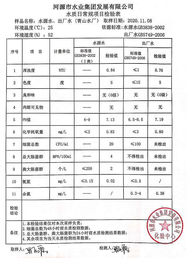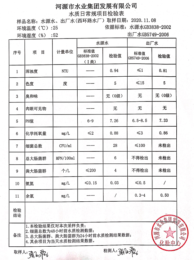 2020年11月8日水質檢驗報告
