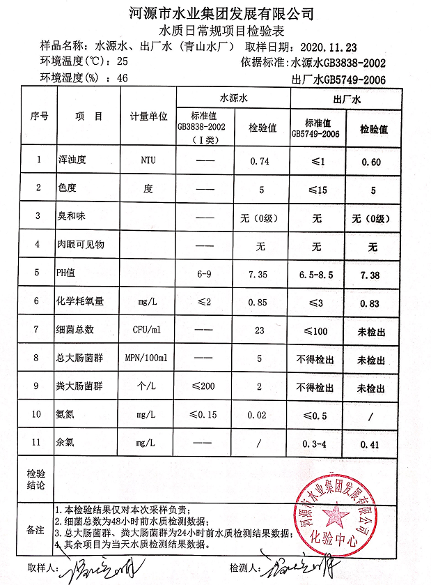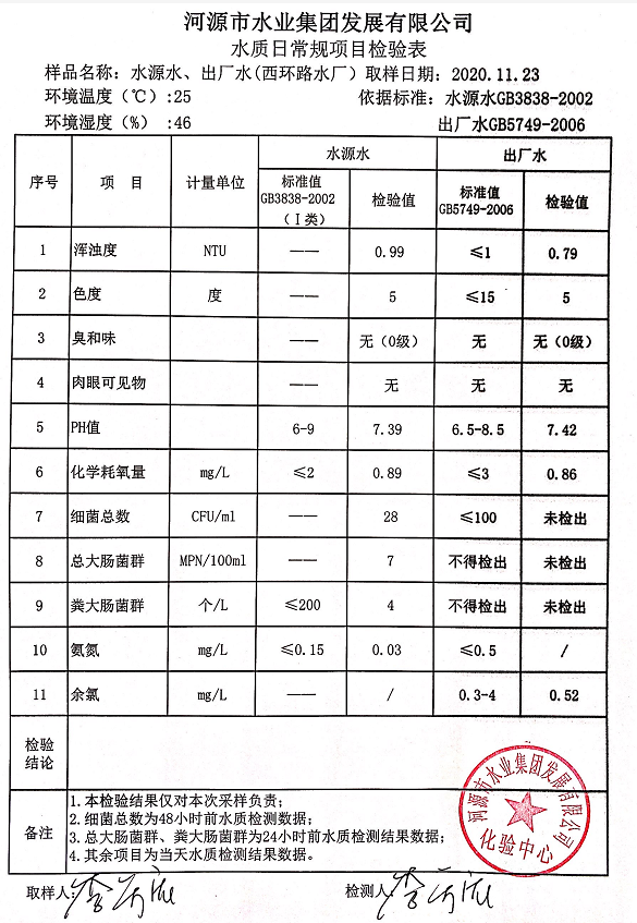 2020年11月23日水質(zhì)檢驗(yàn)報(bào)告
