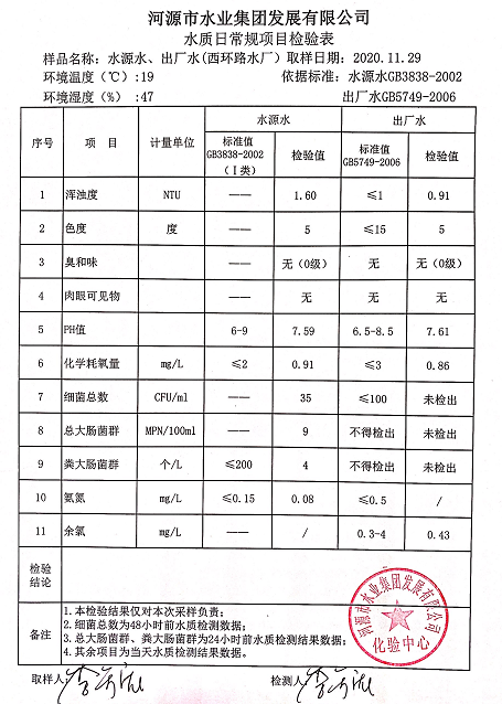 2020年11月29日水質(zhì)檢驗(yàn)報(bào)告