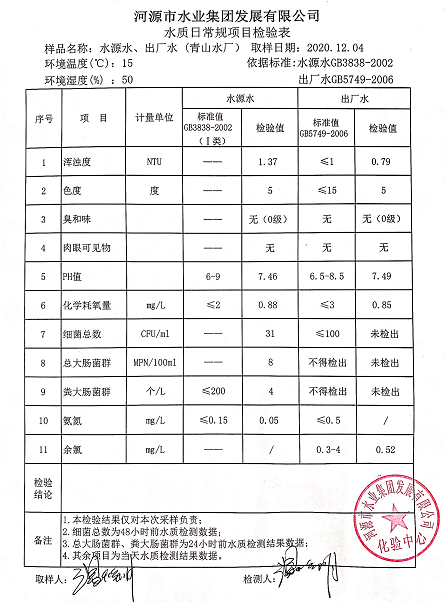 2020年12月4日水質(zhì)檢驗(yàn)報(bào)告