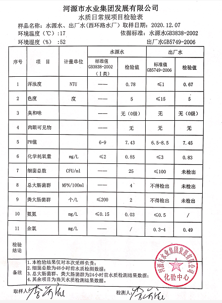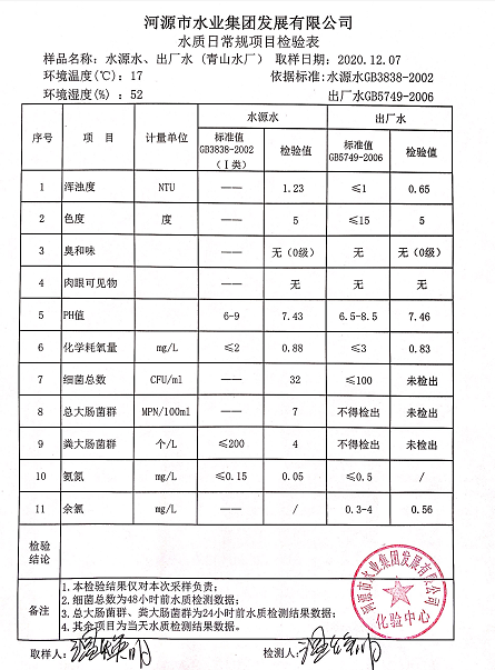 2020年12月7日水質(zhì)檢驗(yàn)報(bào)告