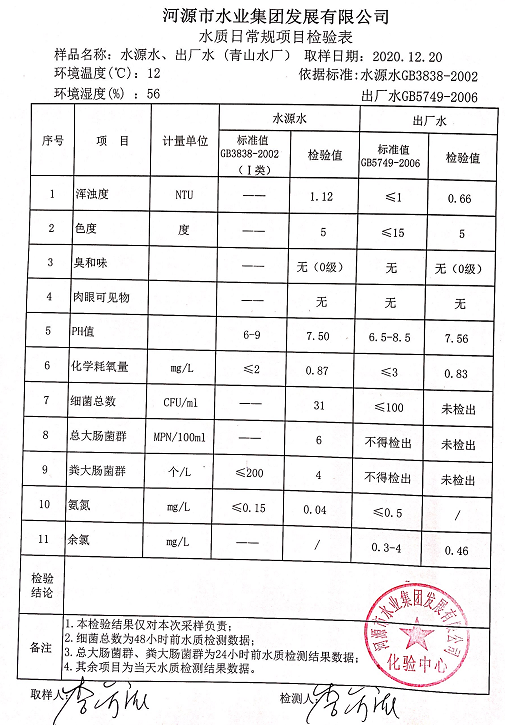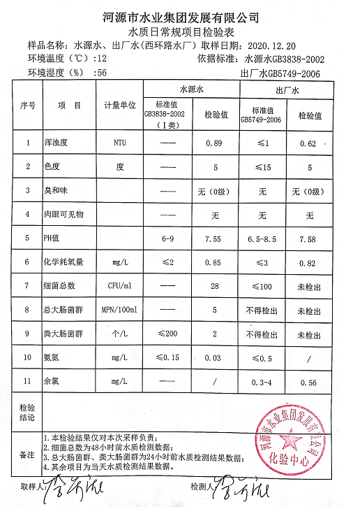2020年12月20日水質(zhì)檢驗(yàn)報(bào)告