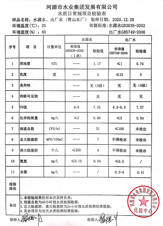 2020年12月28日水質(zhì)檢驗(yàn)報(bào)告