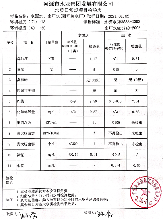 2021年1月2日水質(zhì)檢驗(yàn)報(bào)告