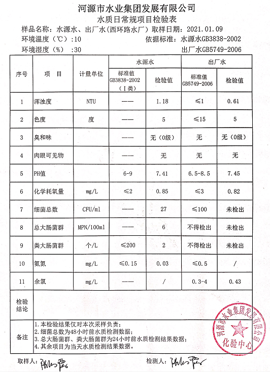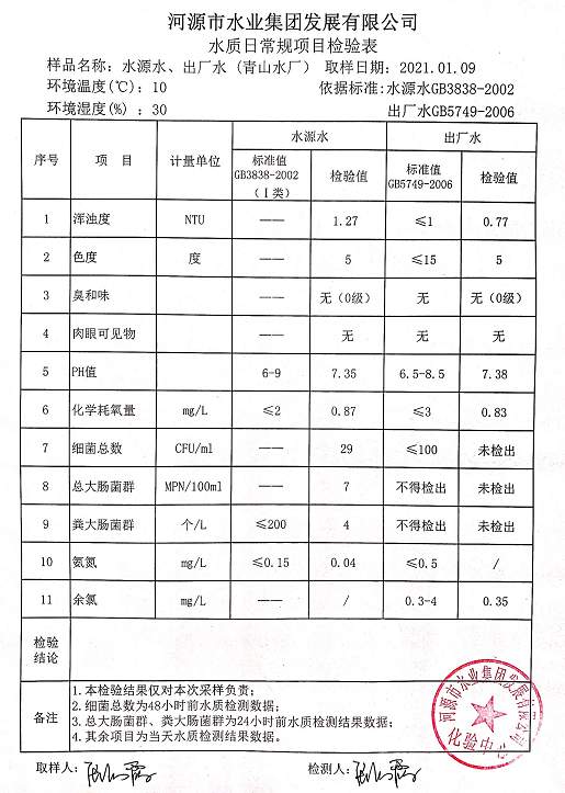 2021年1月9日水質(zhì)檢驗(yàn)報(bào)告