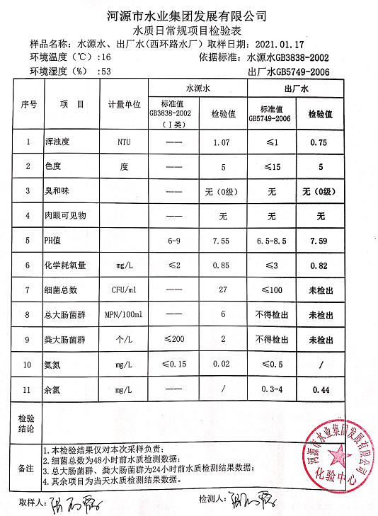 2021年1月17日水質(zhì)檢驗(yàn)報(bào)告