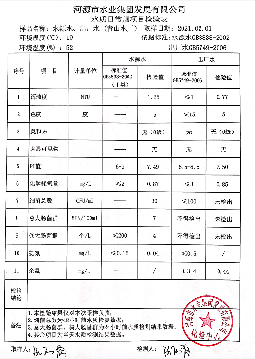 2021年2月1日水質檢驗報告