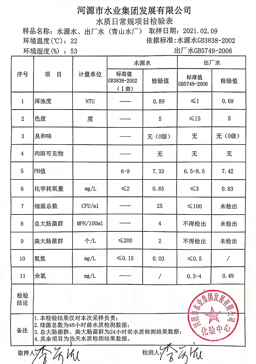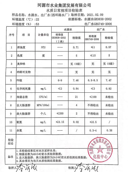 2021年2月9日水質(zhì)檢驗(yàn)報(bào)告