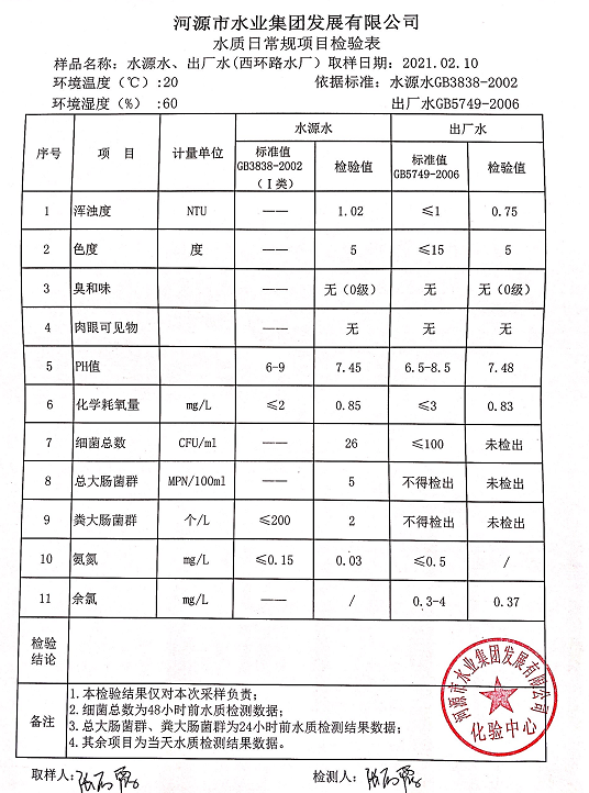 2021年2月10日水質(zhì)檢驗(yàn)報(bào)告