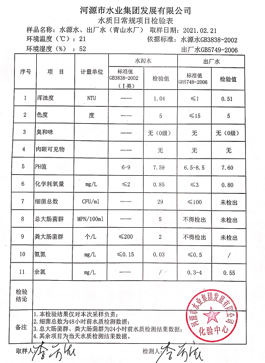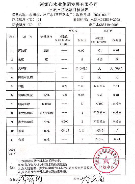 2021年2月21日水質(zhì)檢驗(yàn)報(bào)告