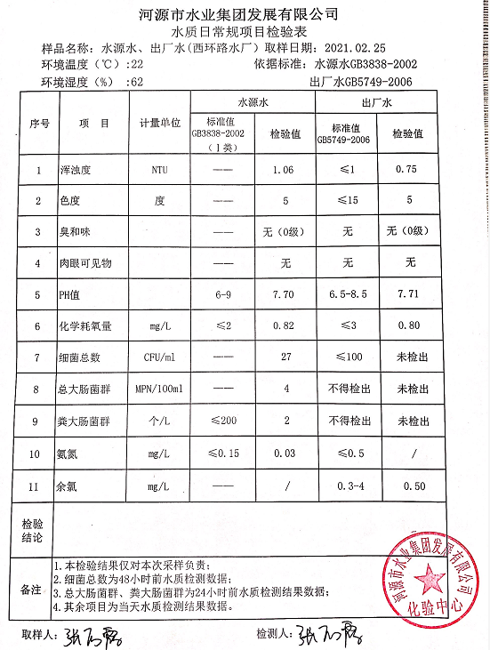 2021年2月25日水質(zhì)檢驗報告