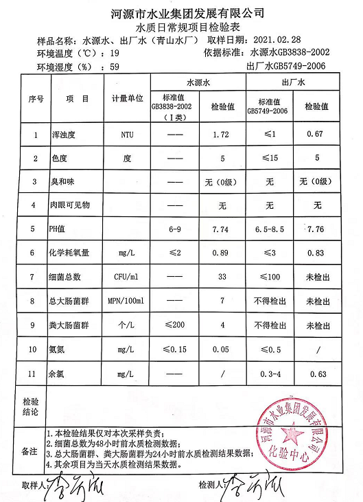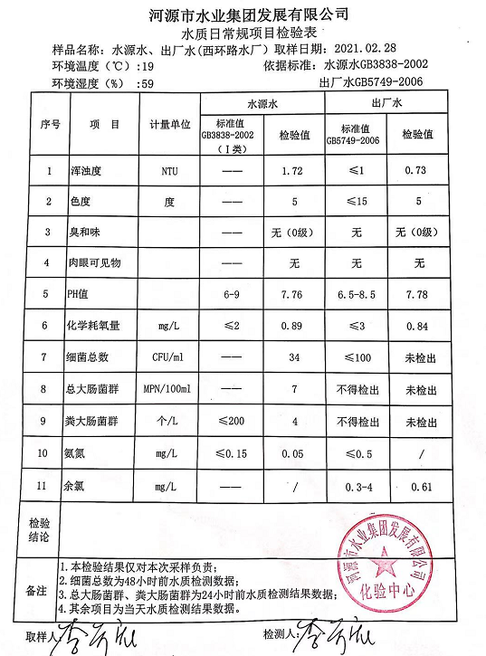 2021年2月28日水質檢驗報告