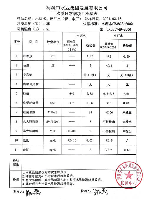 2021年3月16日水質(zhì)檢驗(yàn)報(bào)告