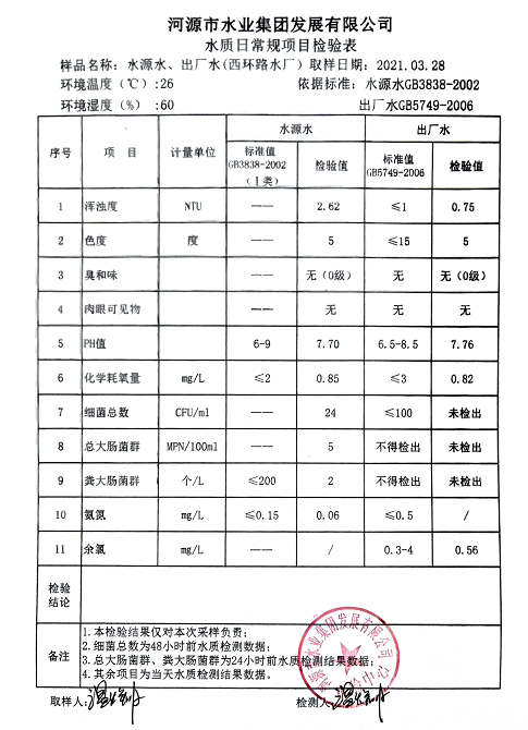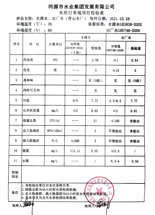 2021年3月28日水質(zhì)檢驗(yàn)報告