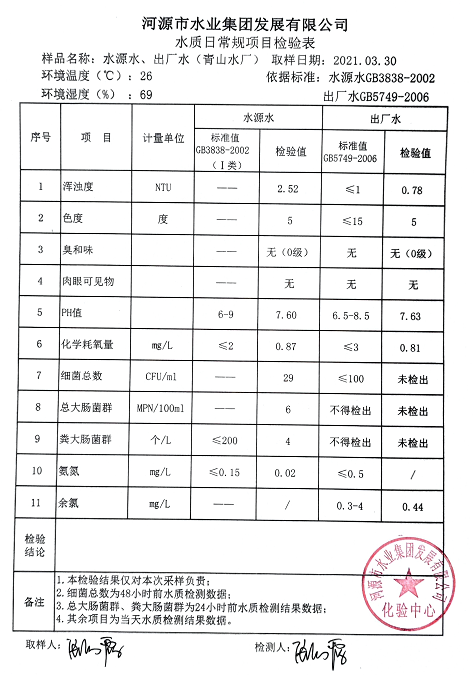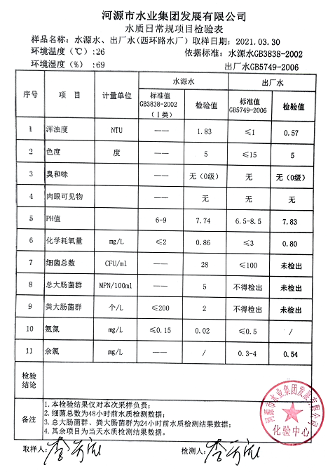 2021年3月30日水質(zhì)檢驗(yàn)報(bào)告