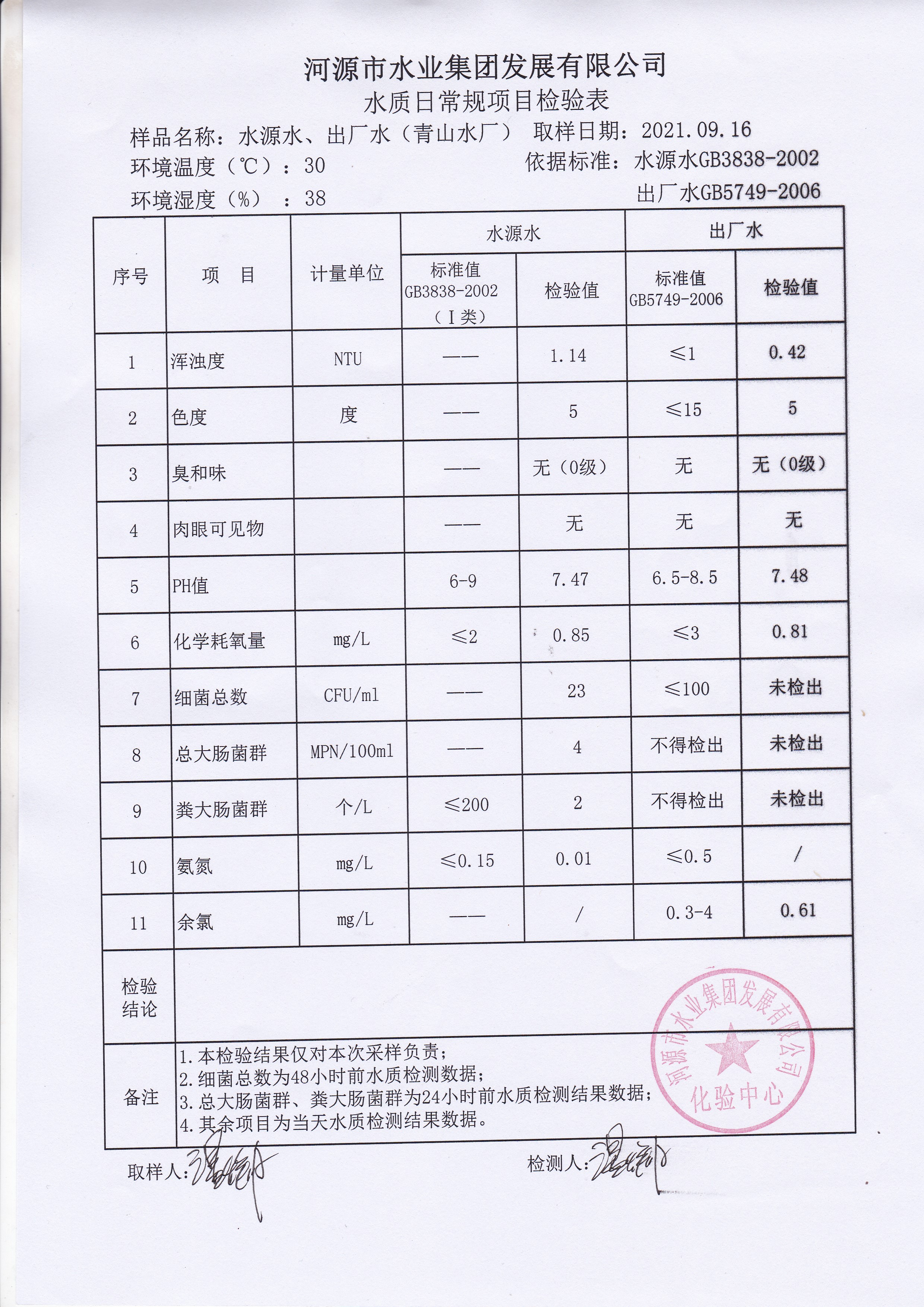 2021年9月16日水質(zhì)檢驗(yàn)報(bào)告 ??