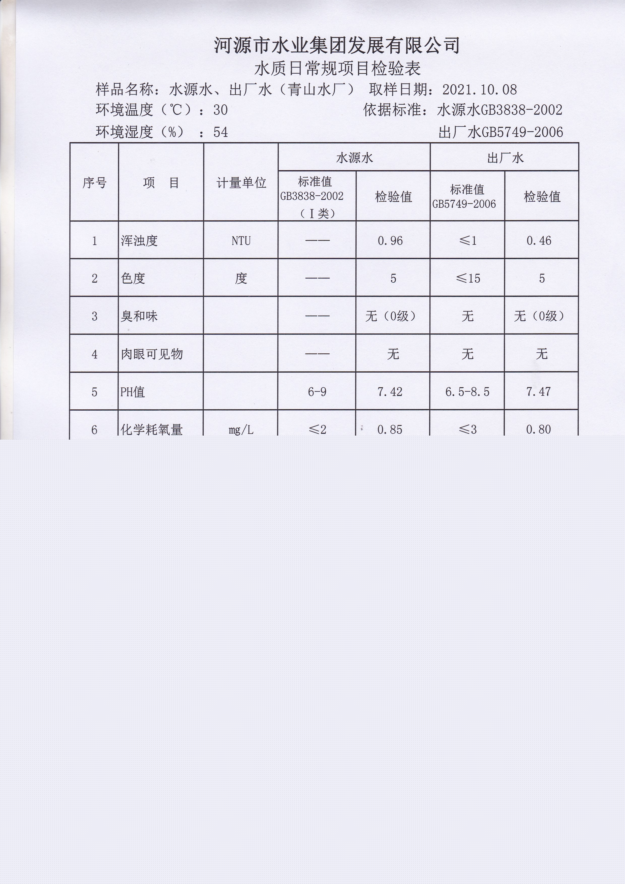 2021年10月8日水質(zhì)檢驗(yàn)報(bào)告