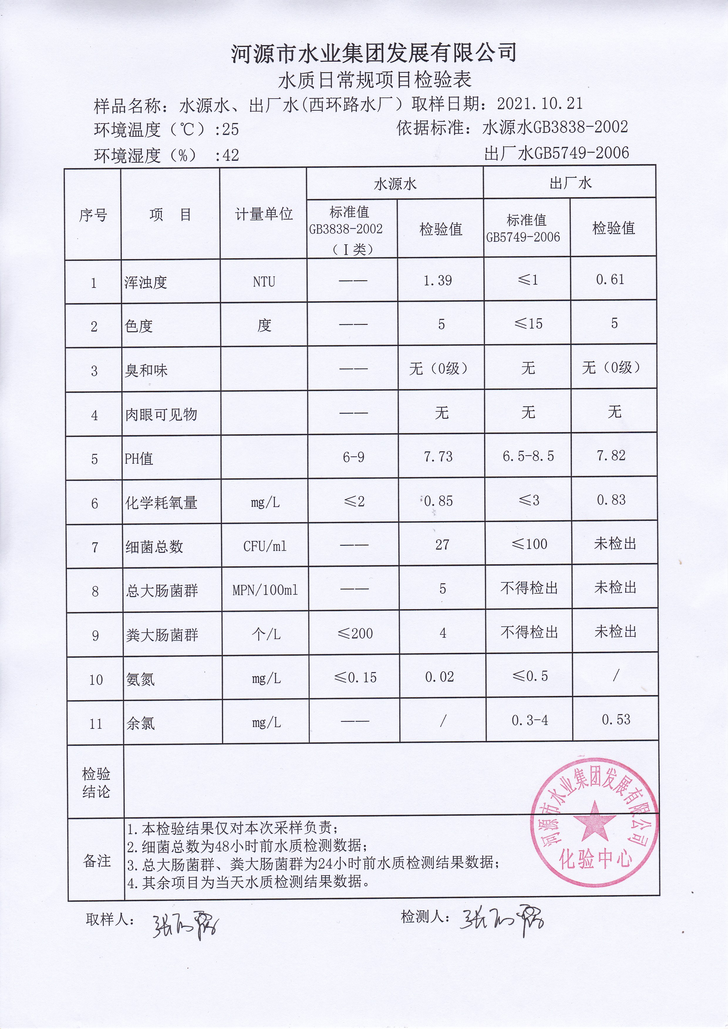 2021年10月21日水質(zhì)檢驗(yàn)報(bào)告