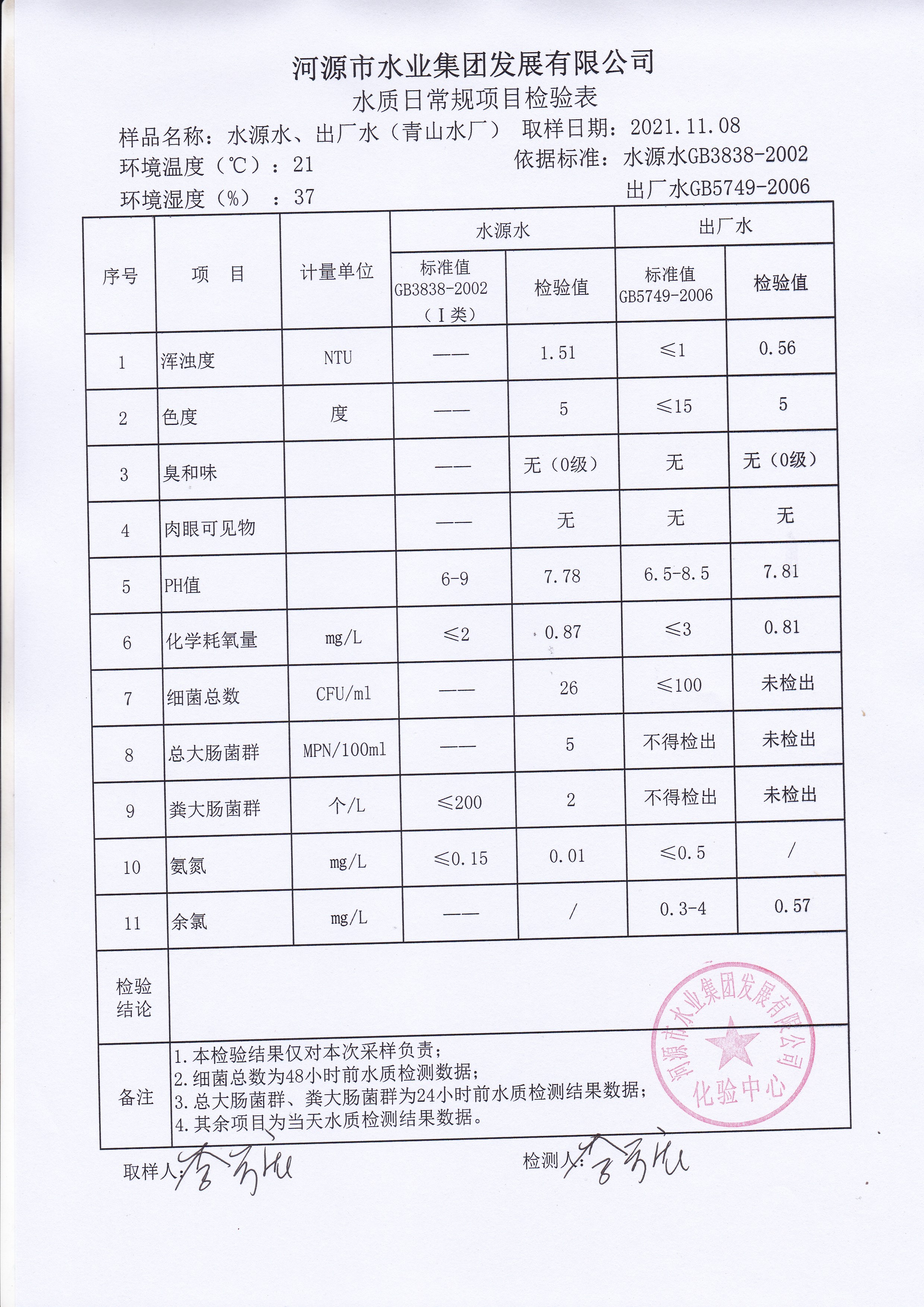 2021年11月8日水質(zhì)檢驗(yàn)報(bào)告