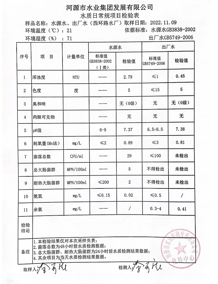 2022年11月9日水質(zhì)檢驗(yàn)報(bào)告