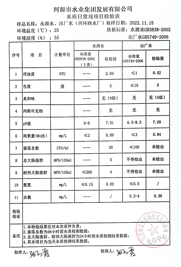 2022年11月15日水質(zhì)檢驗(yàn)報(bào)告