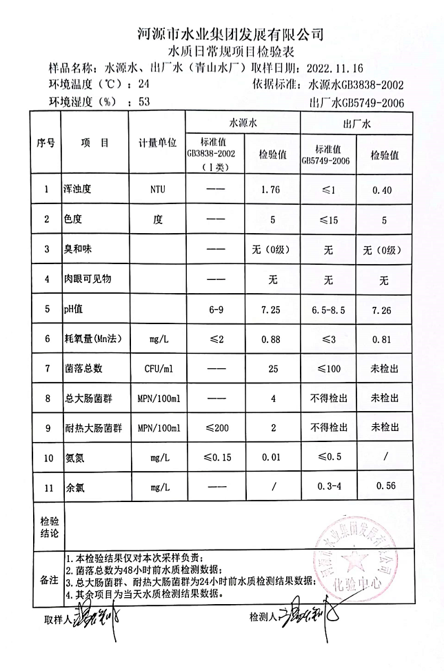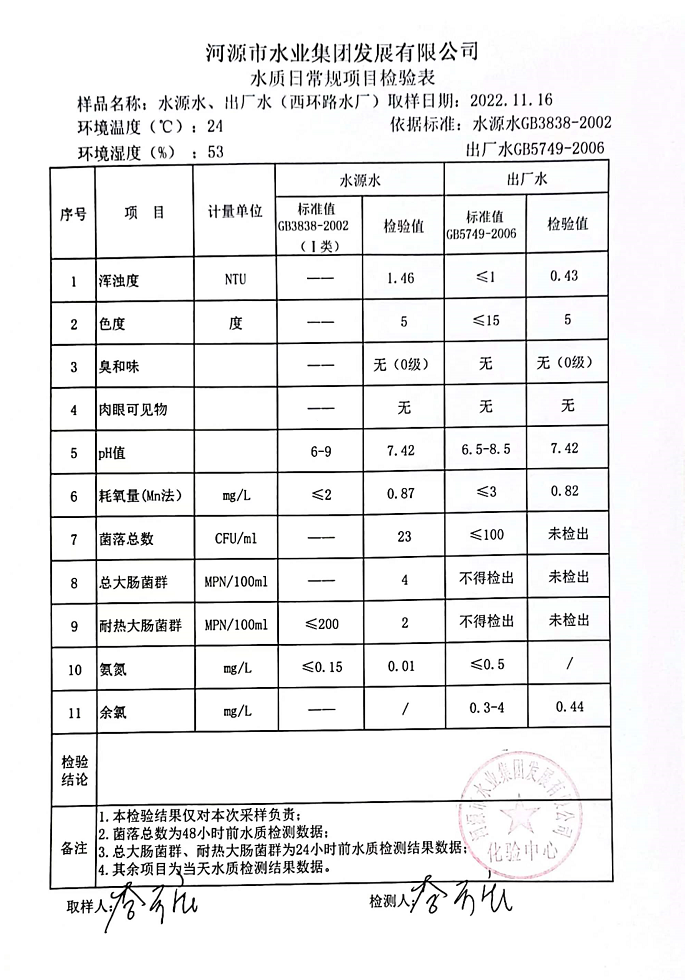 2022年11月16日水質(zhì)檢驗(yàn)報告