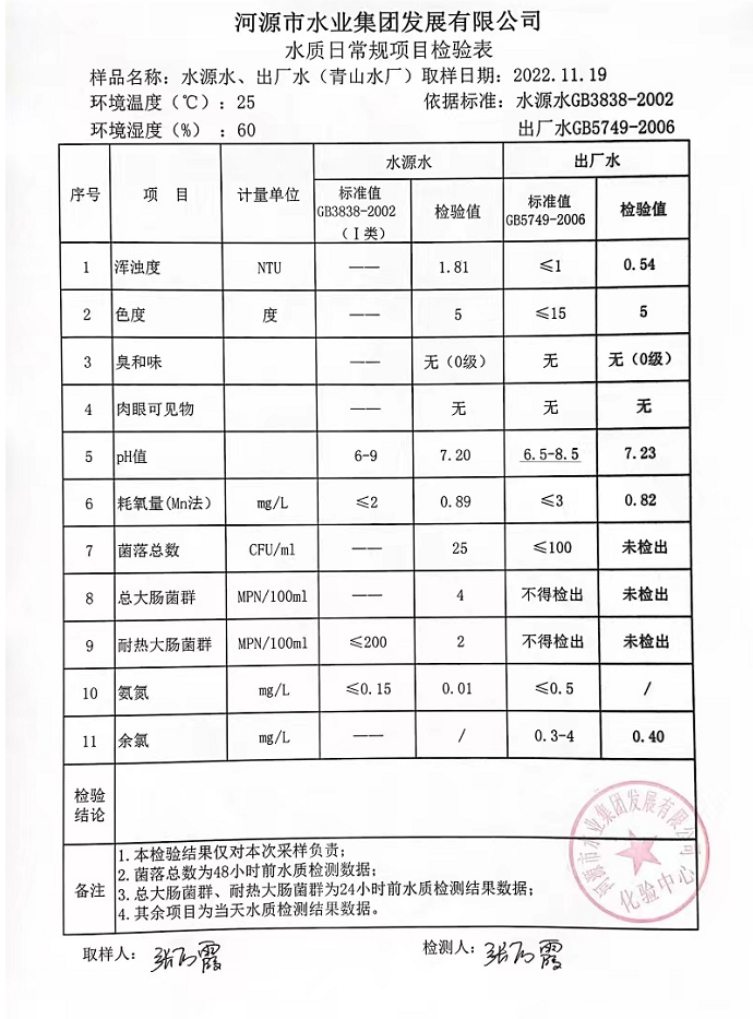 2022年11月19日水質檢驗報告