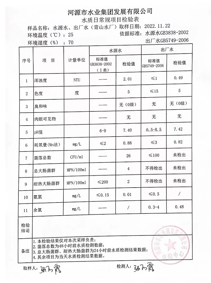 2022年11月22日水質(zhì)檢驗(yàn)報(bào)告
