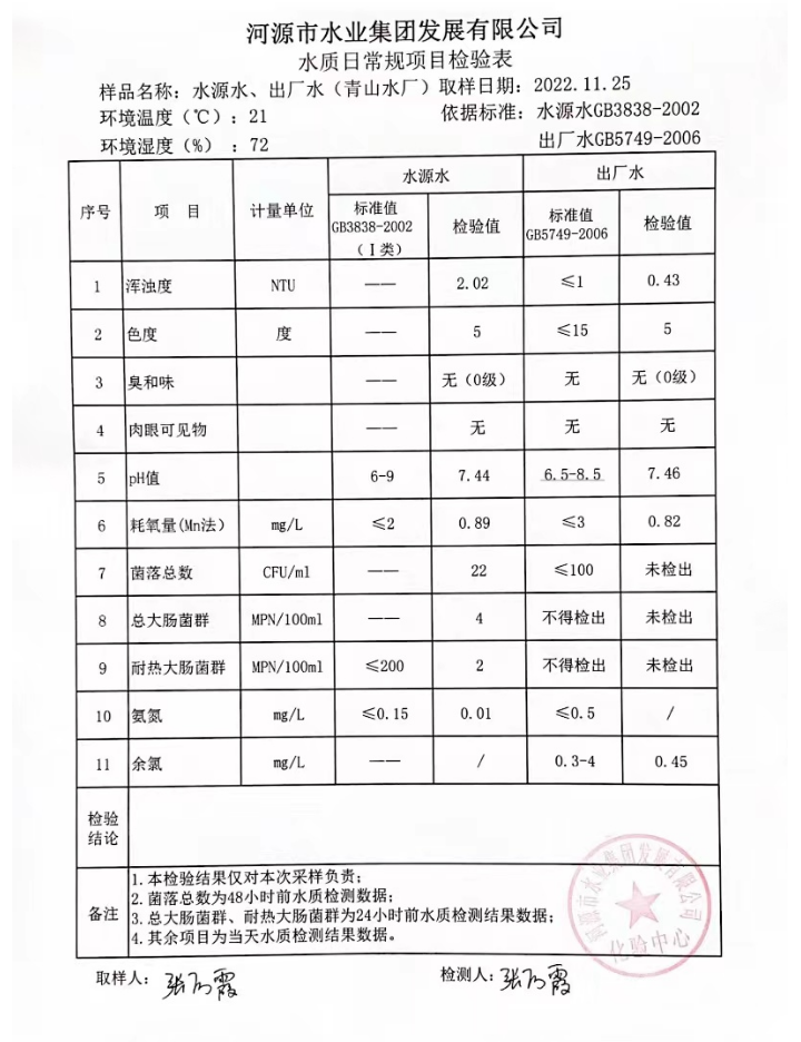 2022年11月25日水質(zhì)檢驗報告