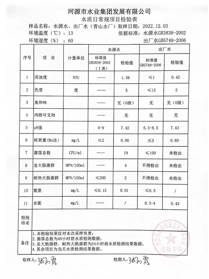 2022年12月3日水質(zhì)檢驗(yàn)報(bào)告