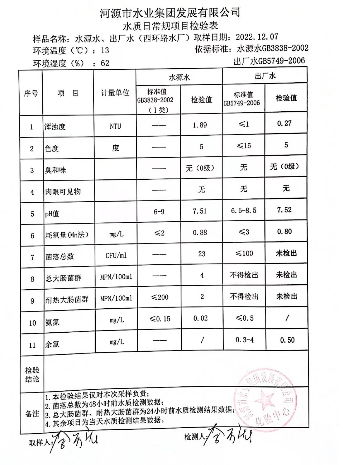 2022年12月7日水質(zhì)檢測報(bào)告