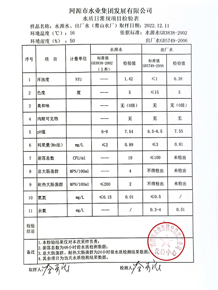 2022年12月11日水質(zhì)檢驗(yàn)報(bào)告