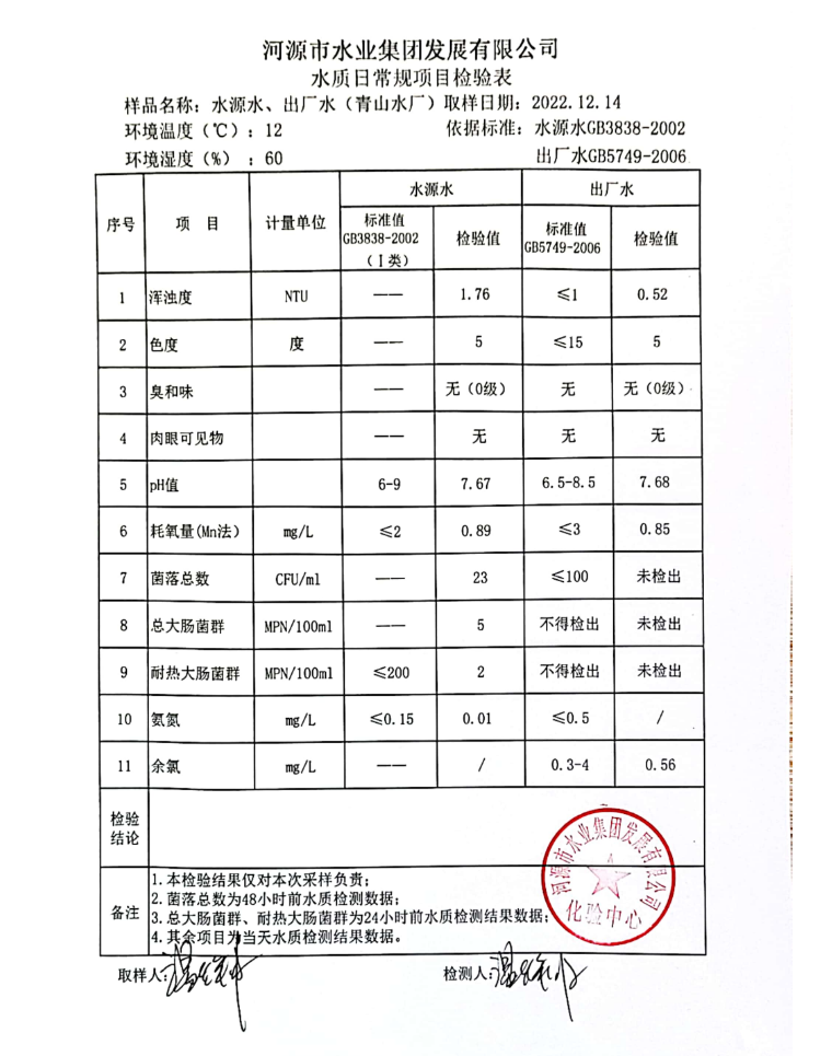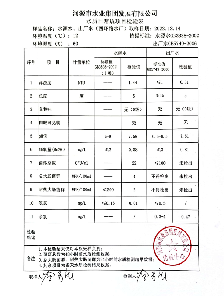 2022年12月14日水質(zhì)檢驗(yàn)報(bào)告