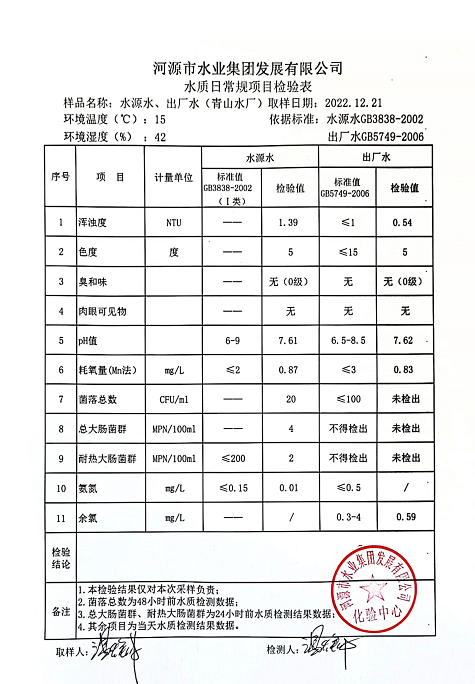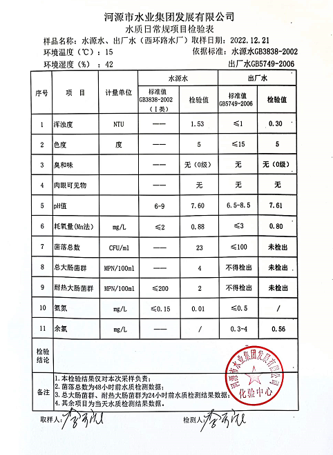 2022年12月21日水質(zhì)檢驗(yàn)報(bào)告