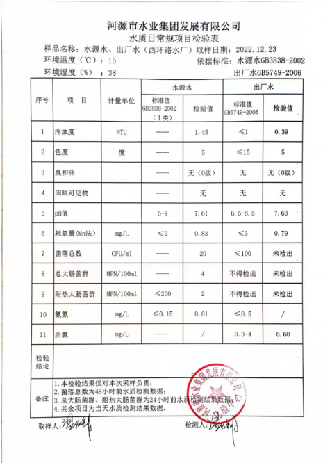 2022年12月23日水質(zhì)檢驗(yàn)報(bào)告