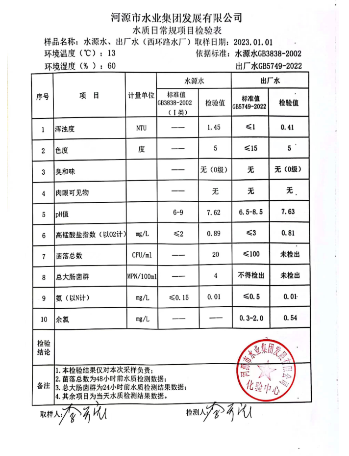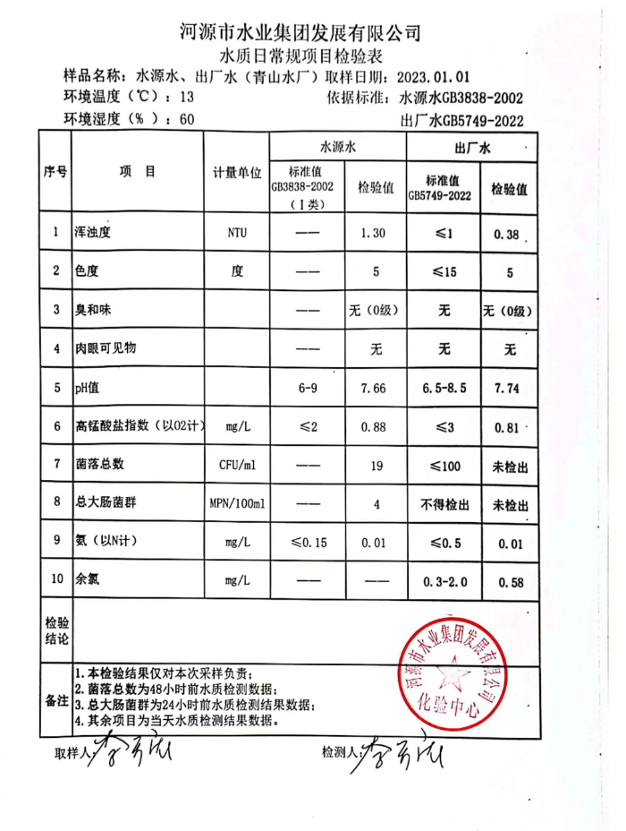 2023年1月1日水質檢驗報告