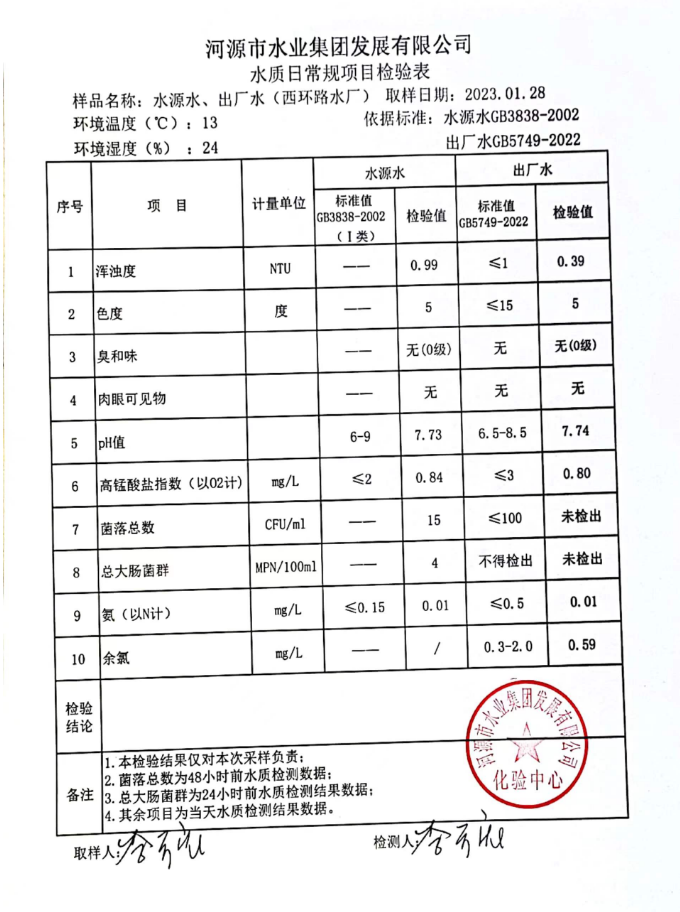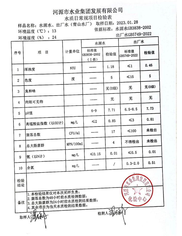 2023年1月28日水質(zhì)檢驗(yàn)報(bào)告